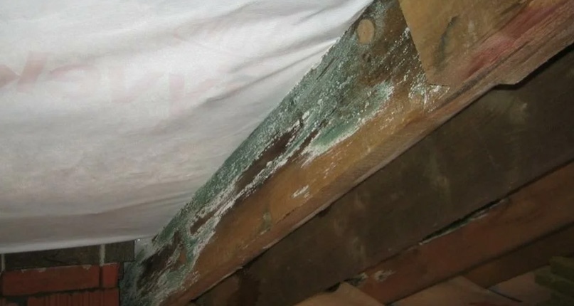 Плесень на потолке или на стыках стен и потолка обычно свидетельствует о протечке или сырости на чердаке. Снег и дождь попадают в щели и прорези крыши, а также в стык крыши и дымохода. Выход – устройства правильной вентиляции и утепление крыши.